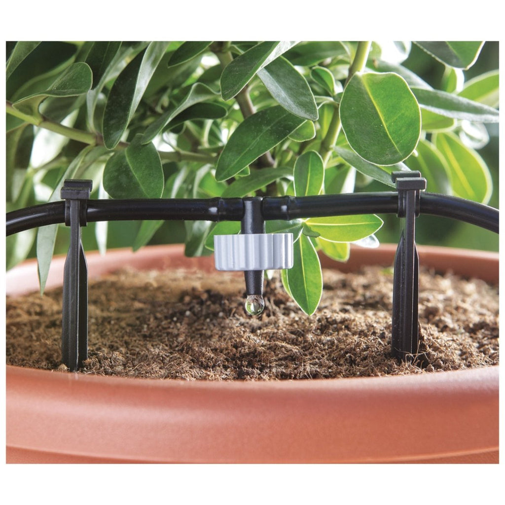 Claber 8064 packs five spare drippers for the Claber Aqua Magic drip irrigation system. They are designed to water potted plants and other plants with the right amount of water without wasting a drop. The drippers are easy to install and use. They push fit onto the Aqua Magic drip line. They have a fixed water flow rate of up to 250 millilitres daily, ideal for most potted plants. The Claber 8064 drippers are a great way to save water and time when watering your plants. They are also an excellent way to ensure your plants get the water they need, even when you are away.