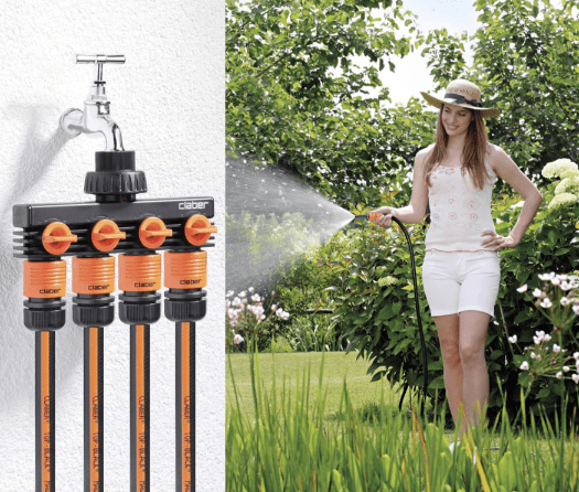 Transform a single outdoor tap into four independently controlled water outlets with the Claber 8580 4-Way Tap Adaptor, ideal for multitasking in your garden irrigation setup. Each outlet has independent flow control with Quick-Click/Snap-On hose connectors. For fast, secure hose attachments.